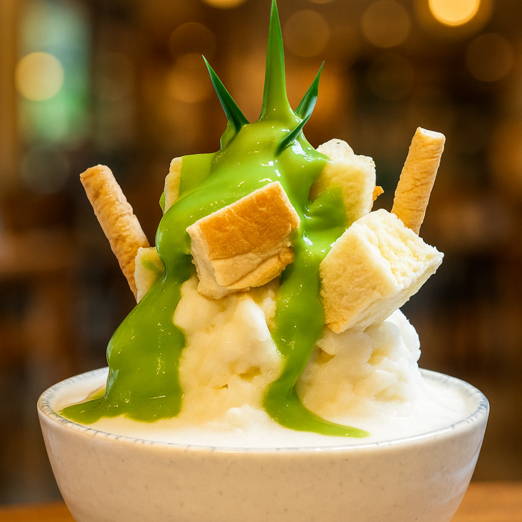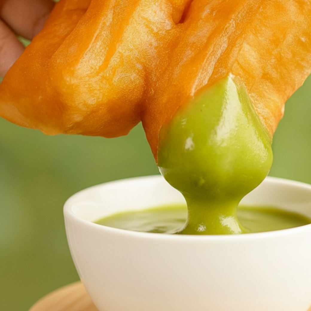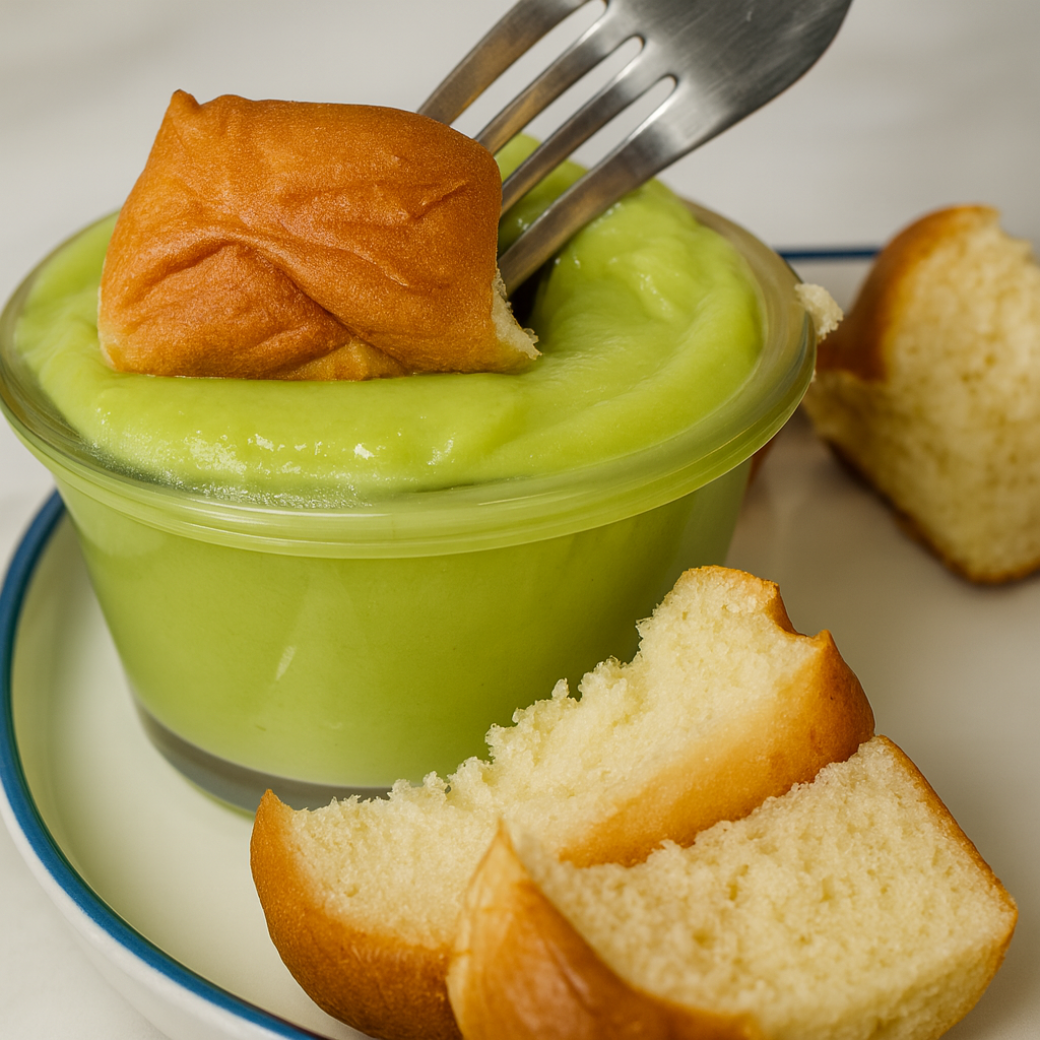 Steamed bread dipped in pandan custard is a delightful dessert loved by people of all ages. The bread is soft and chewy, perfectly complemented by the sweet and aromatic pandan custard. Its smooth texture and irresistible flavor make it so addictive that you won’t be able to stop at just one piece.